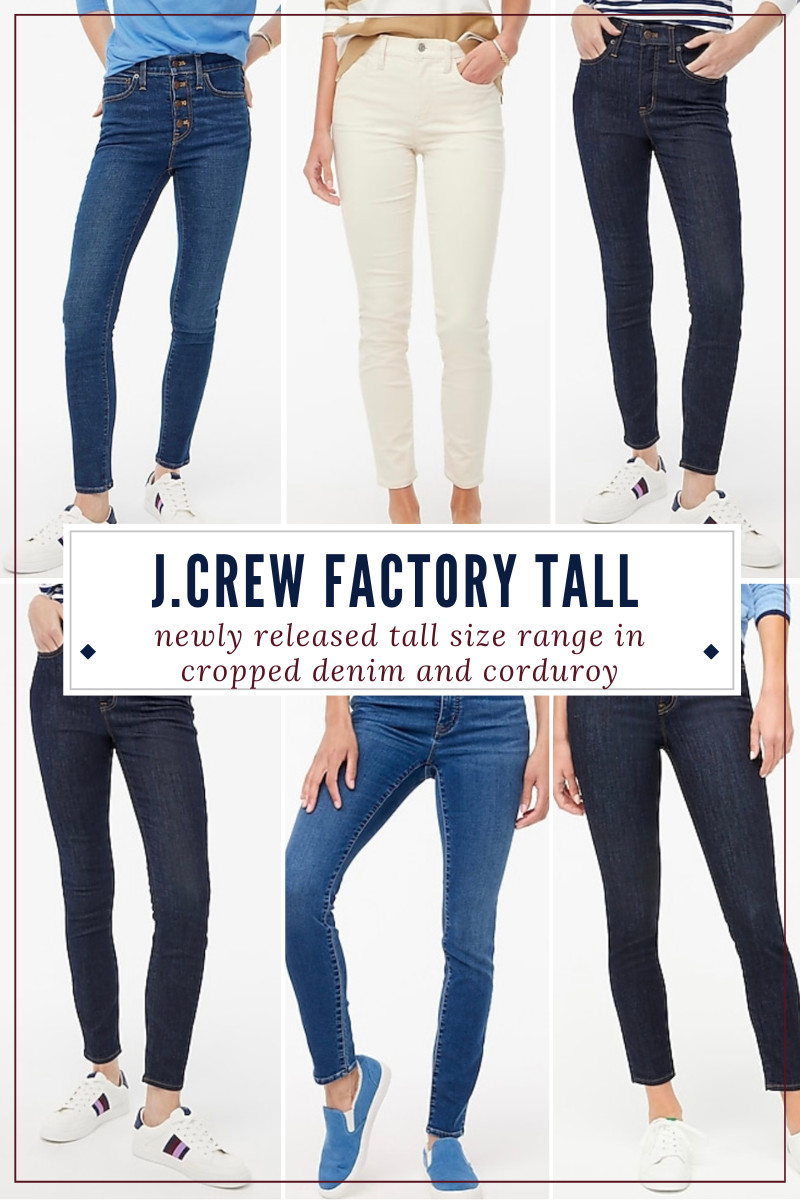 This week J.Crew Factory is serving up cropped skinny denim and neutral corduroys in a tall size range.