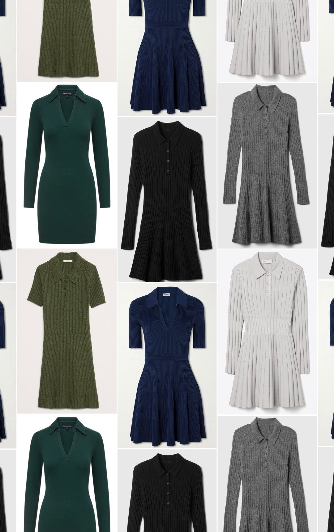 Over the past few months, the emergence of polo collar sweater dresses of the mini and midi, long and short sleeve varieties was striking. Every brand has polo collar sweaterdresses for spring and most of them are in a ribbed knit. From fabric content to price, let’s break down the options: